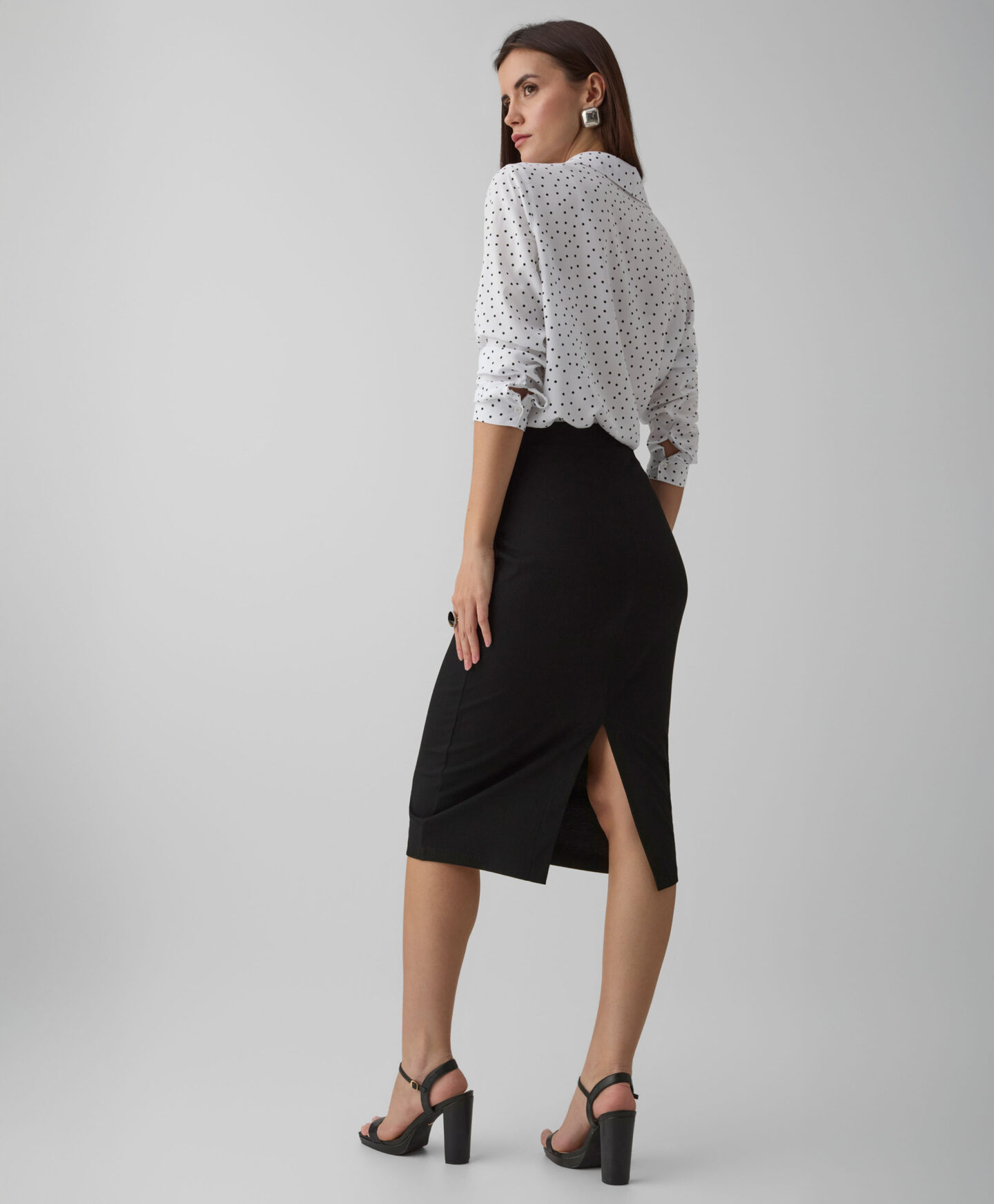 Ženska suknja s prorezom savršen je odjevni komad za svaki ormar. Izgleda izvrsno i uz klasične majice i uz elegantne košulje. Univerzalna boja omogućuje vam bezbroj mogućnosti stiliziranja. Prorez sprijeda naglasit će vaše najbolje adute i vizualno izdužiti noge. Suknja je lagana, mekana i otporna na pranje.