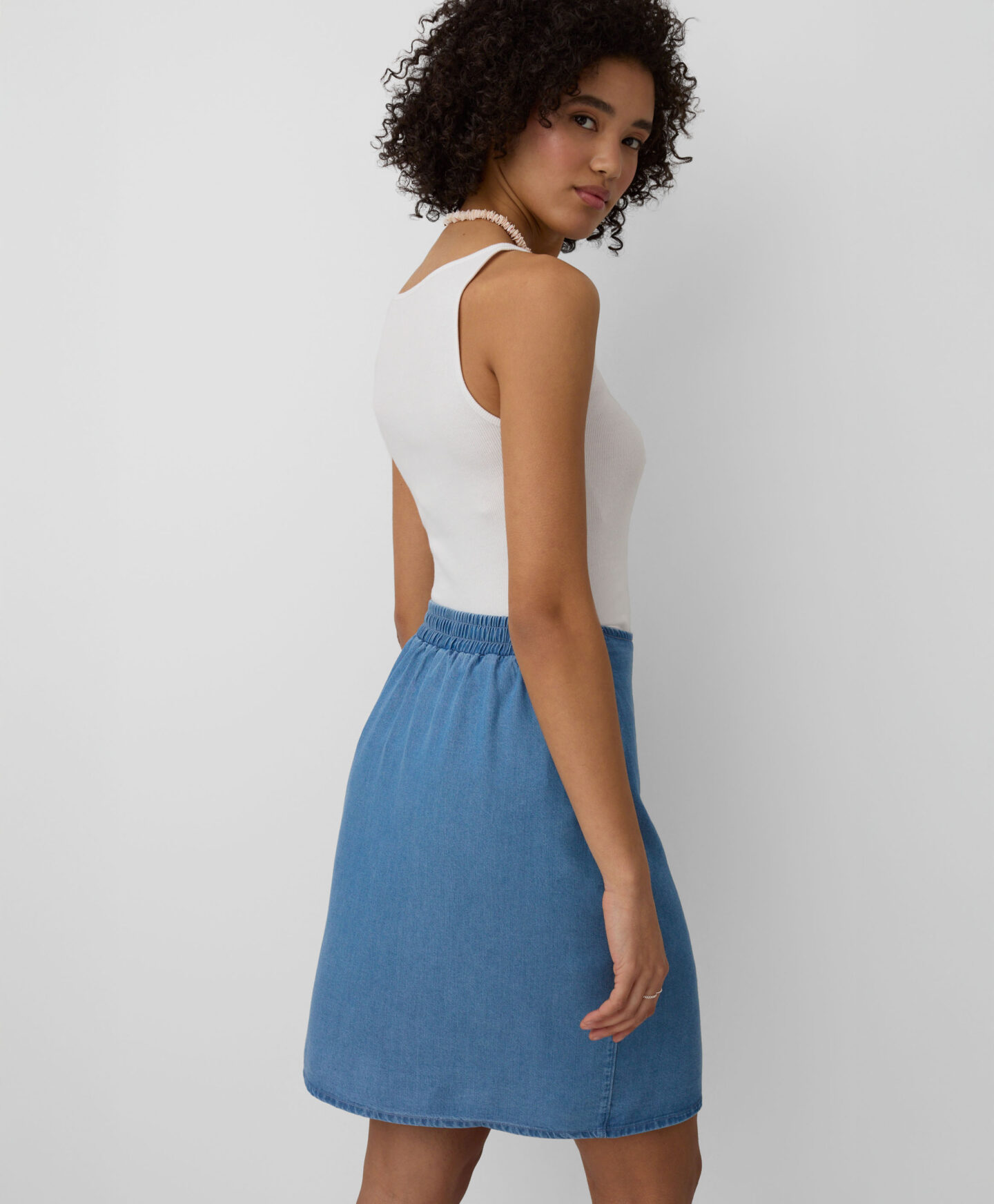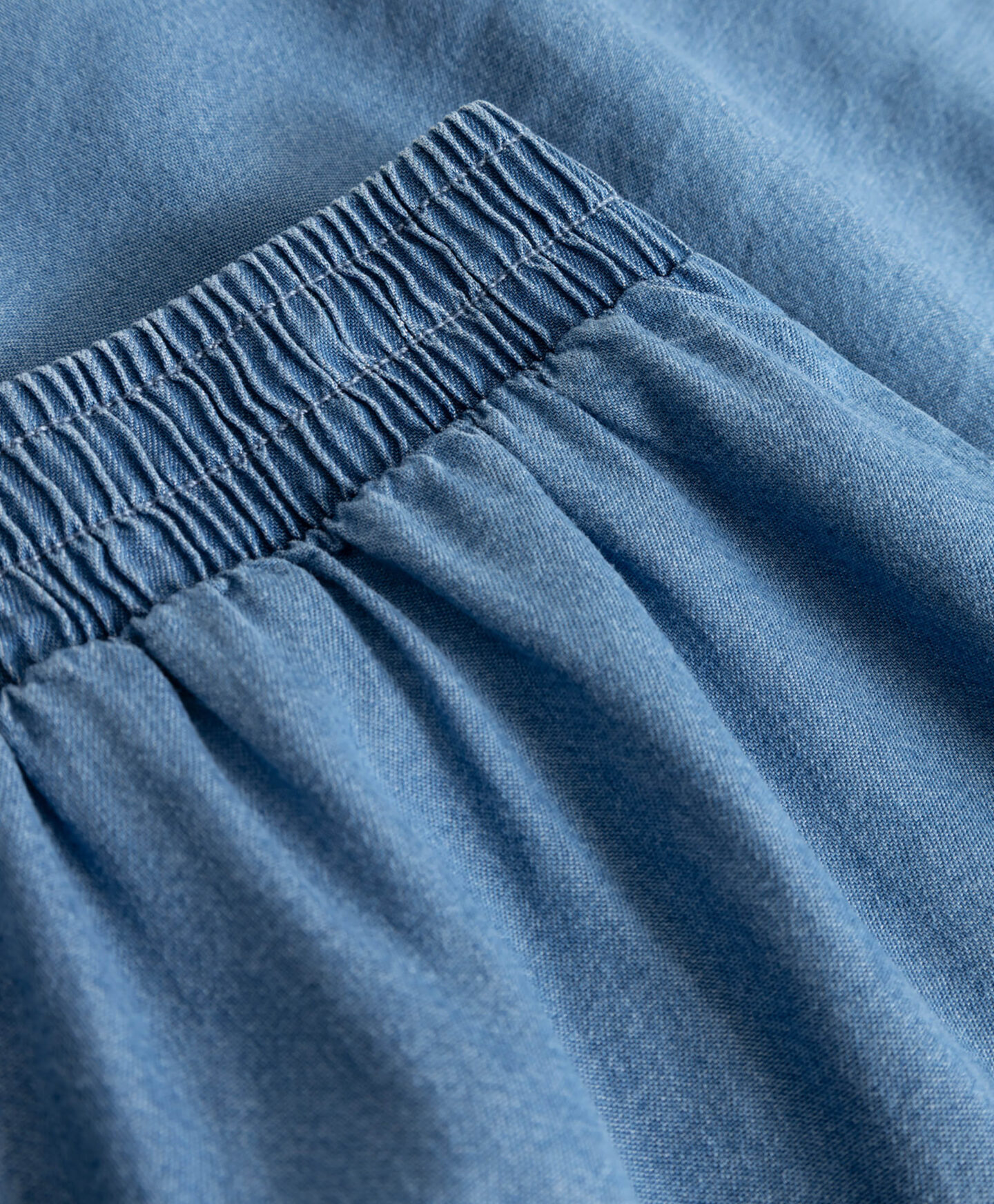 Ženska suknja od 100% liocela s kratkim hlačama i vezicom u struku spaja eleganciju suknje s praktičnošću kratkih hlača. Materijal je izdržljiv i ne gužva se, a ujedno je nježan prema koži i prozračan. Ova suknja savršena je za tople dane i pruža vam potpunu slobodu pokreta i udobnost.