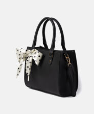 Crna ženska torbica s maramom s točkicama elegantan je dodatak koji kombinira klasičan stil s modernim detaljima. Torba je izrađena od izdržljivih materijala i odlično će pristajati uz sve odjevne kombinacije. Ukrasna marama čini torbu jedinstvenom.