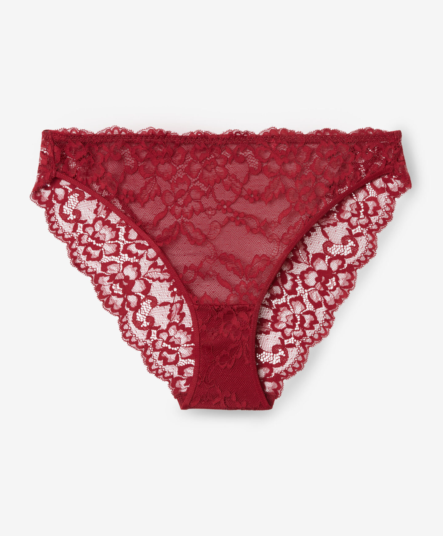 Ženske čipkaste bikini gaćice s motivom ruža bordo