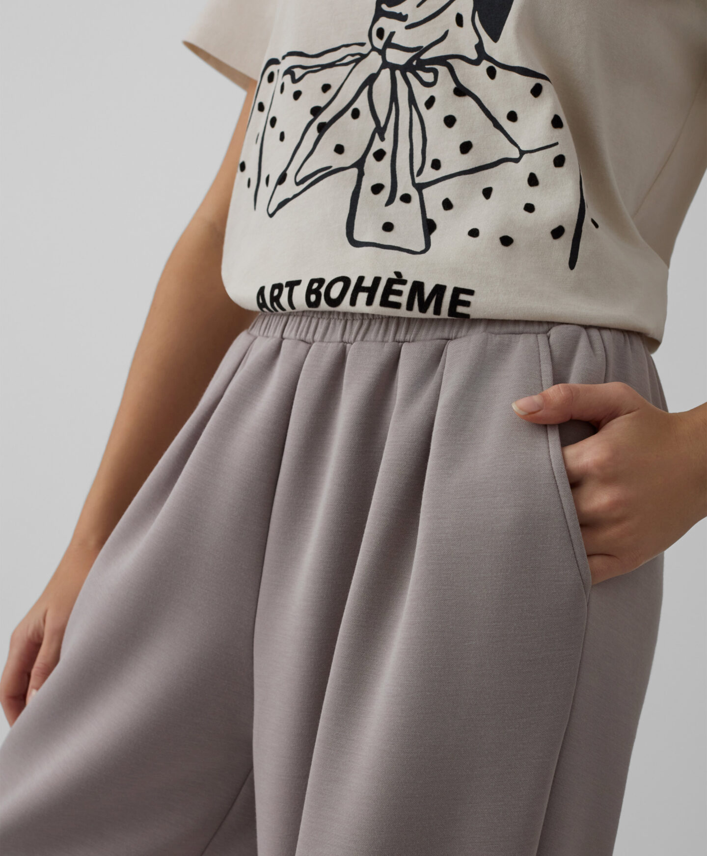 Ženske bež hlače s elastičnom trakom u struku udoban su i elegantan odjevni komad za svaku ženu. Zahvaljujući elastičnoj traci u struku, pružaju maksimalnu udobnost tijekom nošenja i lako se prilagođavaju različitim figurama. Bež boja svestrana je i uklopit će se u razne odjevne kombinacije – svakodnevne i svečanije. Mekan i nježan materijal garantira udobnost tijekom cijelog dana.