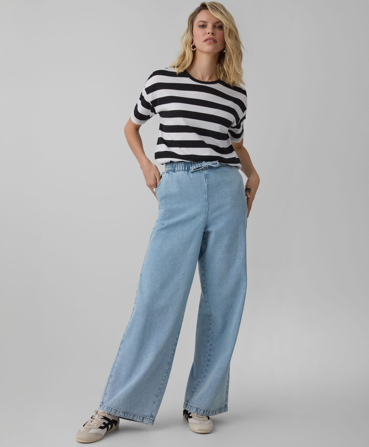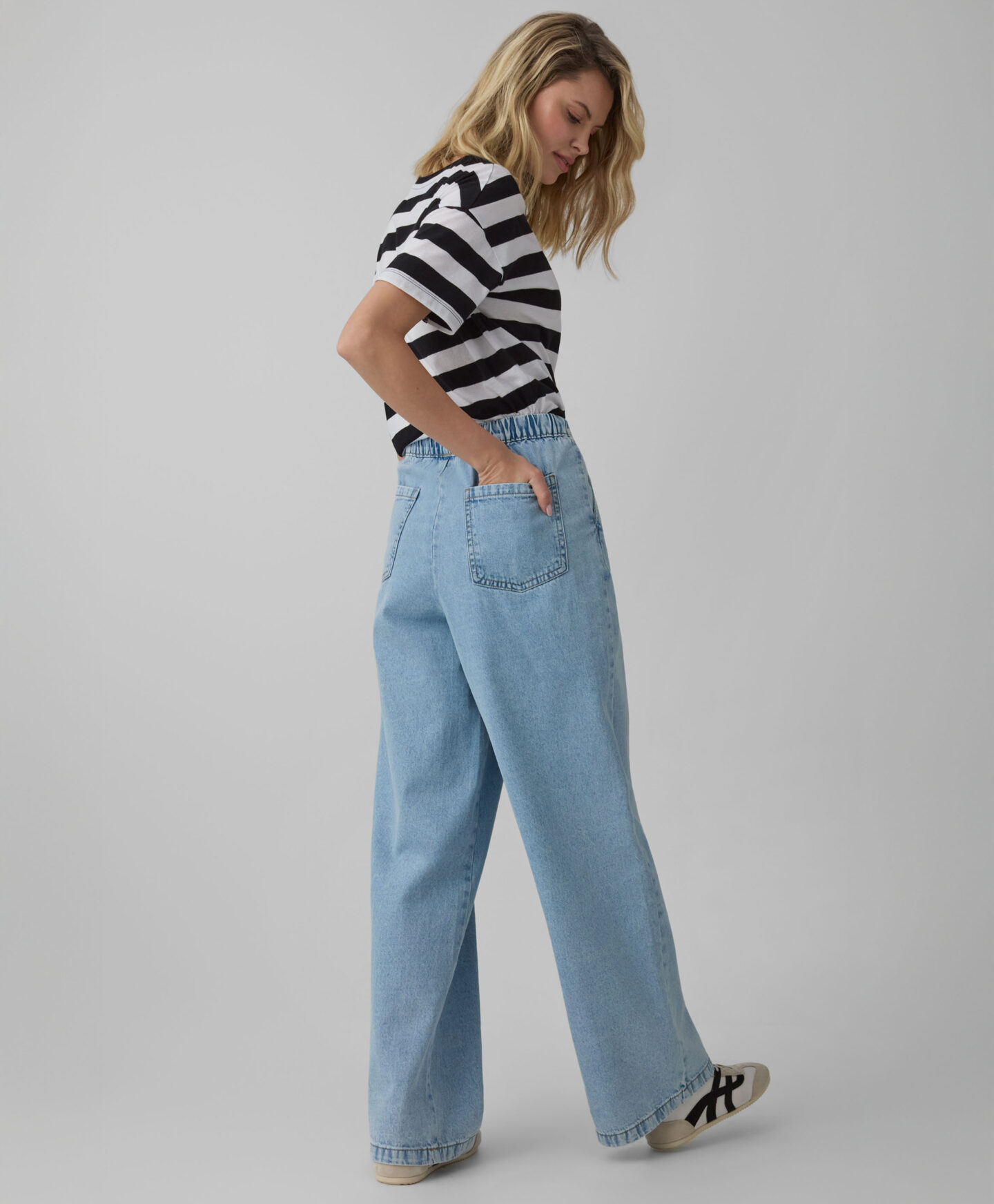 Ženske hlače s elastičnom trakom u struku i modernim širokim nogavicama nude vam potpunu slobodu kretanja, udobnost i moderan izgled. Možete ih kombinirati s majicama ili košuljama. Odličan su odabir za opuštanje kod kuće, šetnje na svježem zraku ili brzu kupovinu.