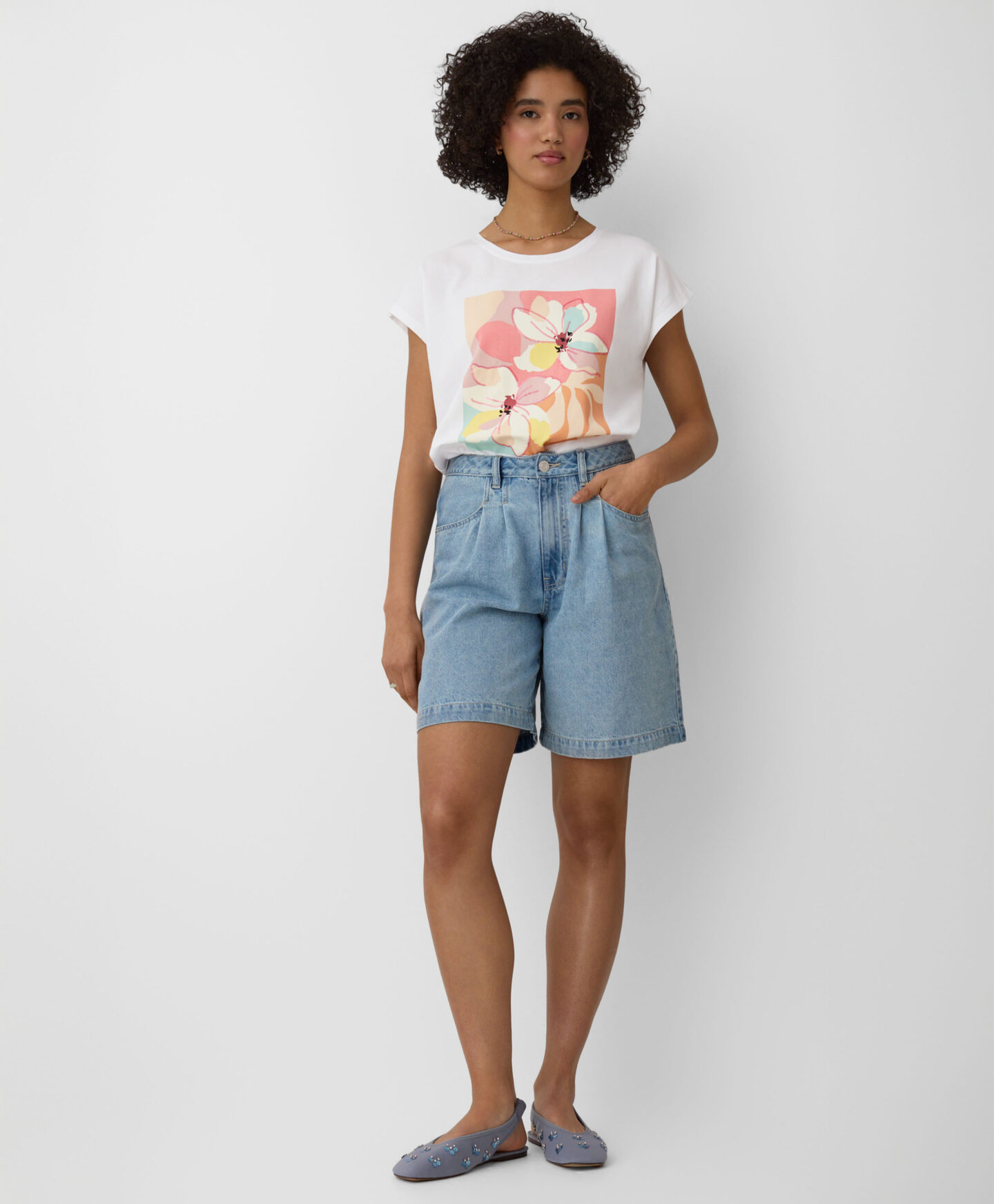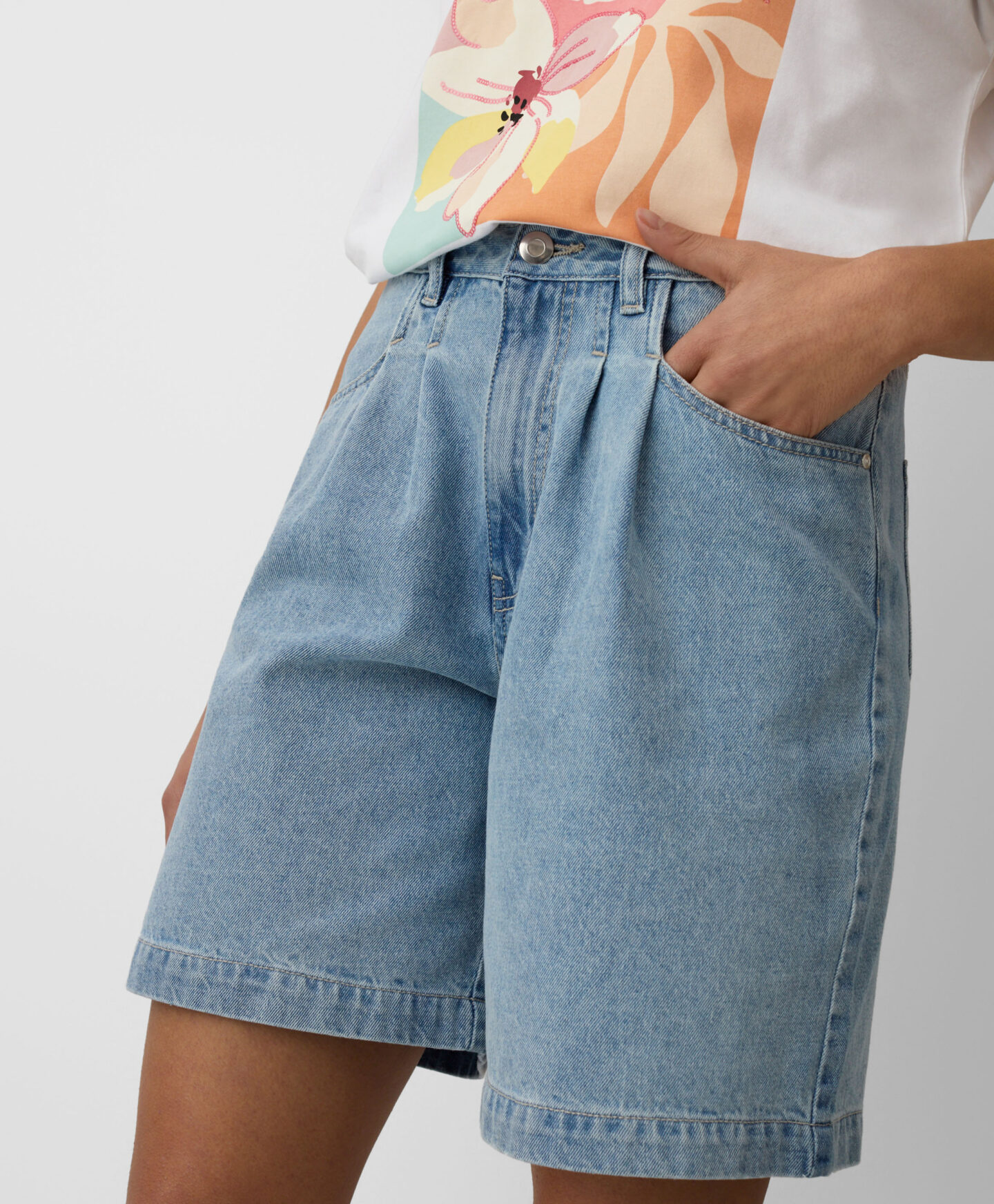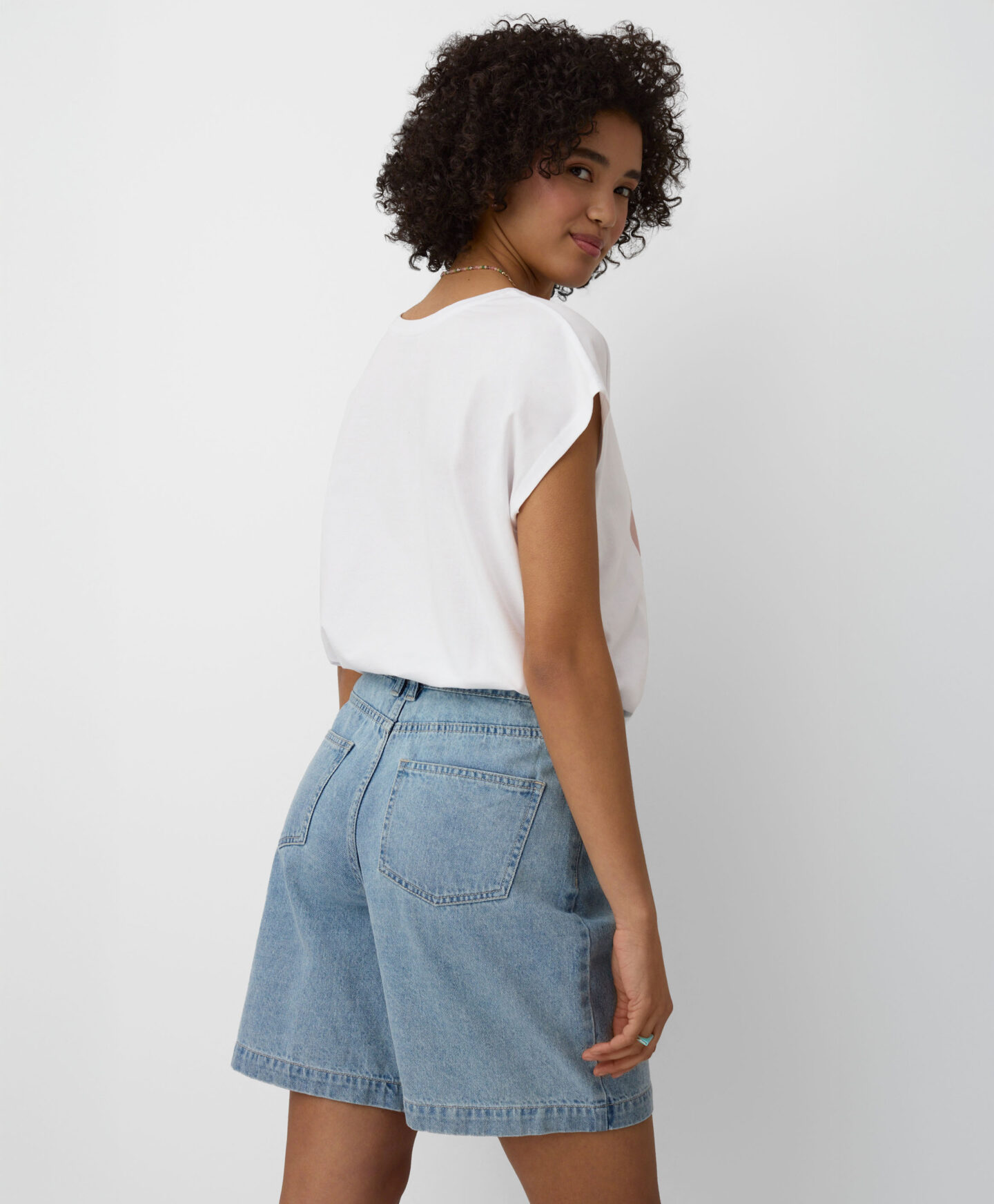 Kratke ženske bermude izrađene su od 100% pamuka pa su savršen izbor za žene koje traže udobnost i klasičan stil za tople dane. Široki kroj omogućuje potpunu slobodu kretanja, a svestrana duljina nogavica pristaje svakom obliku tijela. Bezvremenski traper pruža vam potpunu slobodu stiliziranja.