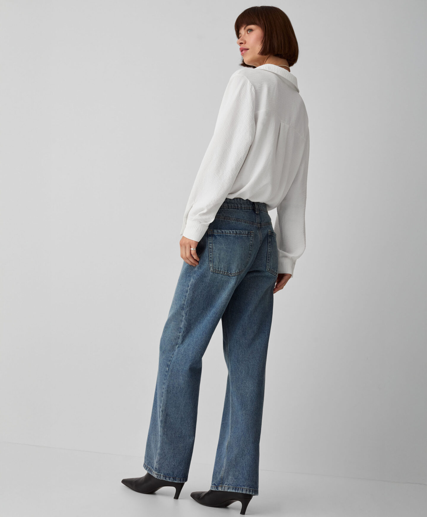 Ženske traperice od 100% pamuka sa širokim nogavicama modni su hit ove sezone. Odlično izgledaju i uz uske gornje dijelove i uz odjevne predmete šireg kroja. Klasična boja omogućit će vam da ih kombinirate s mnogim komadima iz vaše garderobe. Svestrane su, udobne i lako se održavaju.