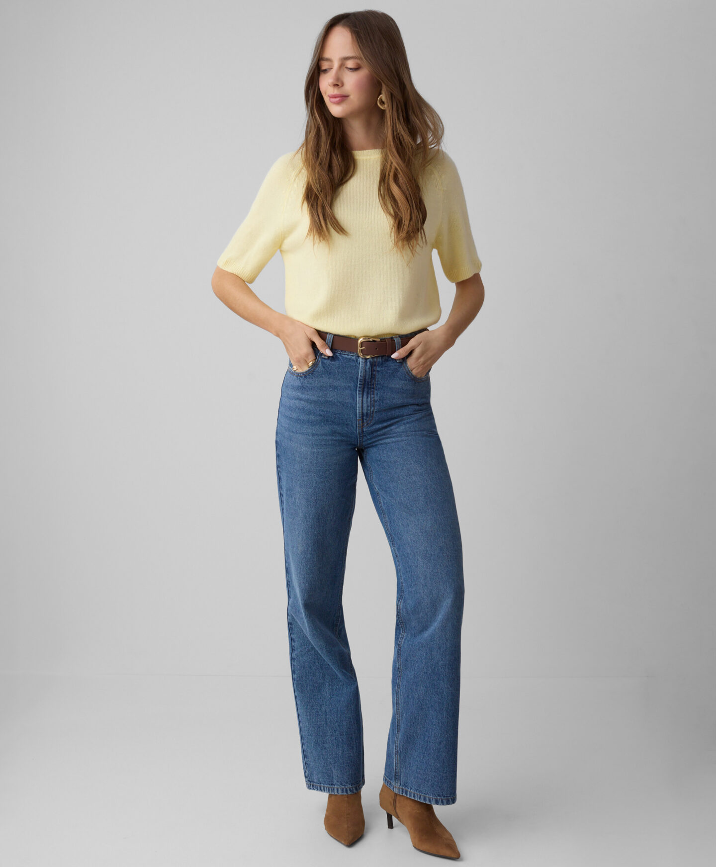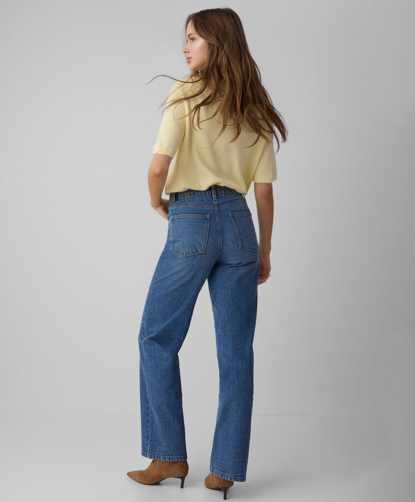 Ženske traperice od 100% pamuka sa širokim nogavicama neizostavan su komad u garderobi svake žene, bez obzira na godišnje doba. Sjajno izgledaju uz ležernu majicu kratkih rukava, ali i elegantnu bijelu košulju. Savršene su za ured, spoj ili izlazak s prijateljima. Klasična plava boja pristaje uz sve.