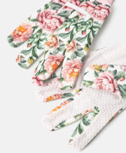 Ženske vrtne rukavice s cvjetnim motivom neizostavan su dodatak za svaku ženu koja radi u vrtu i brine o sigurnosti osjetljive kože ruku. Izvrsno pristaju, udobne su i ne sputavaju vas tijekom rada. Izrađene su od izdržljivih materijala i štite vas od trnja i prljavštine, a teksturirana površina omogućuje čvrsto držanje vrtnog alata. Rukavice su jednostavne za održavanje. U ponudi je dostupno više motiva.