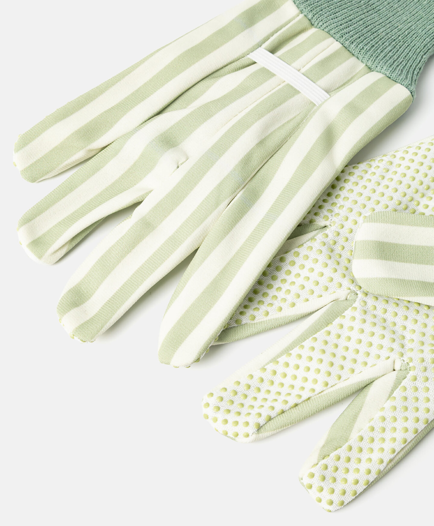 Ženske vrtne rukavice s prugama neizostavan su dodatak za svaku ženu koja radi u vrtu i brine o sigurnosti osjetljive kože ruku. Izvrsno pristaju, udobne su i ne sputavaju vas tijekom rada. Izrađene su od izdržljivih materijala i štite vas od trnja i prljavštine, a teksturirana površina omogućuje čvrsto držanje vrtnog alata. Rukavice su jednostavne za održavanje. U ponudi je dostupno više motiva.