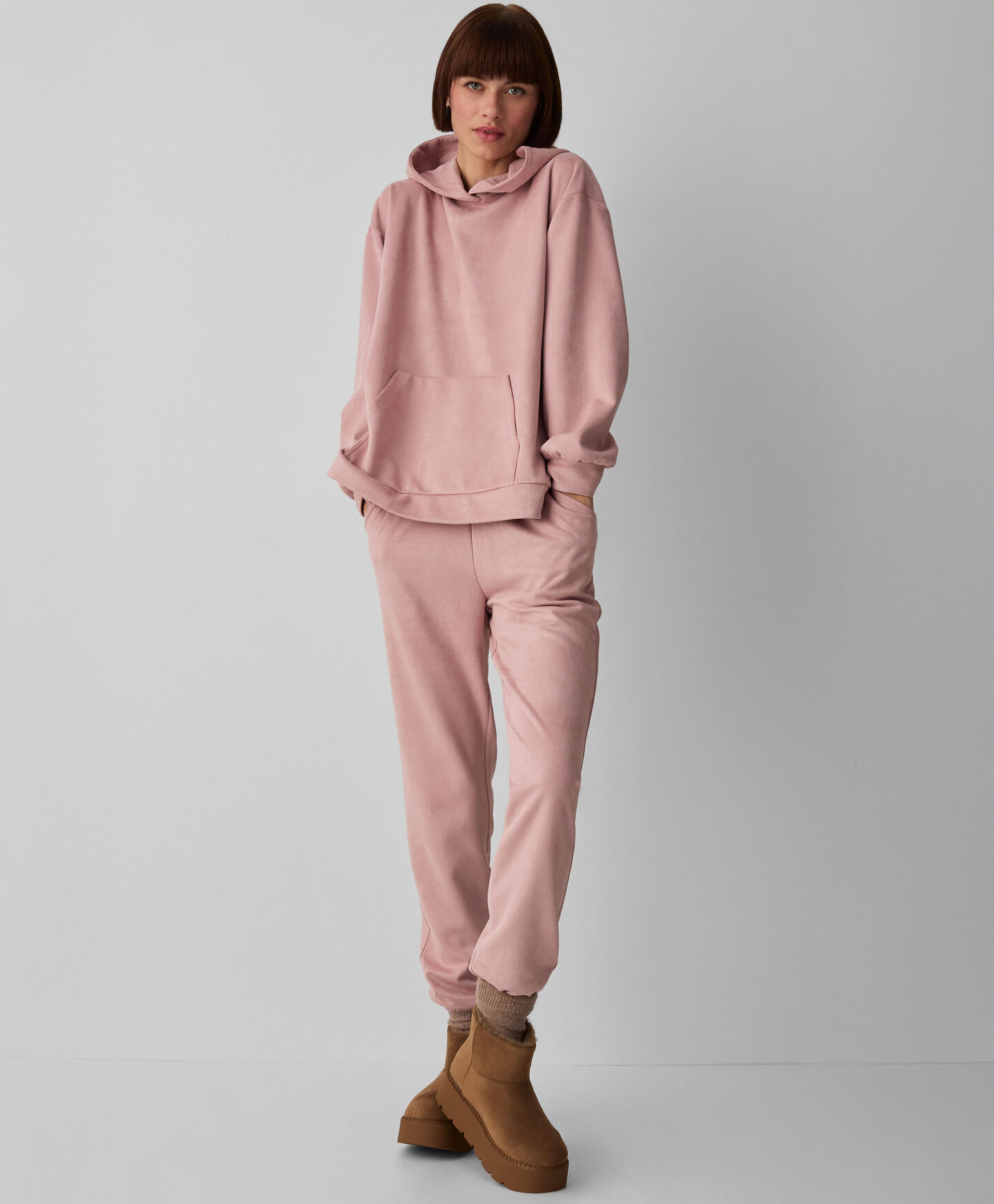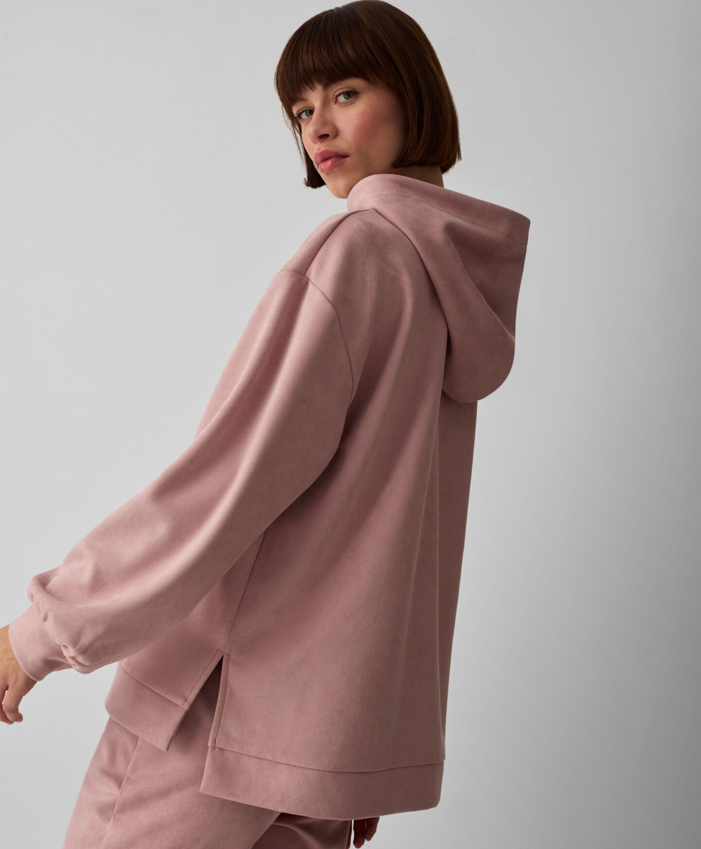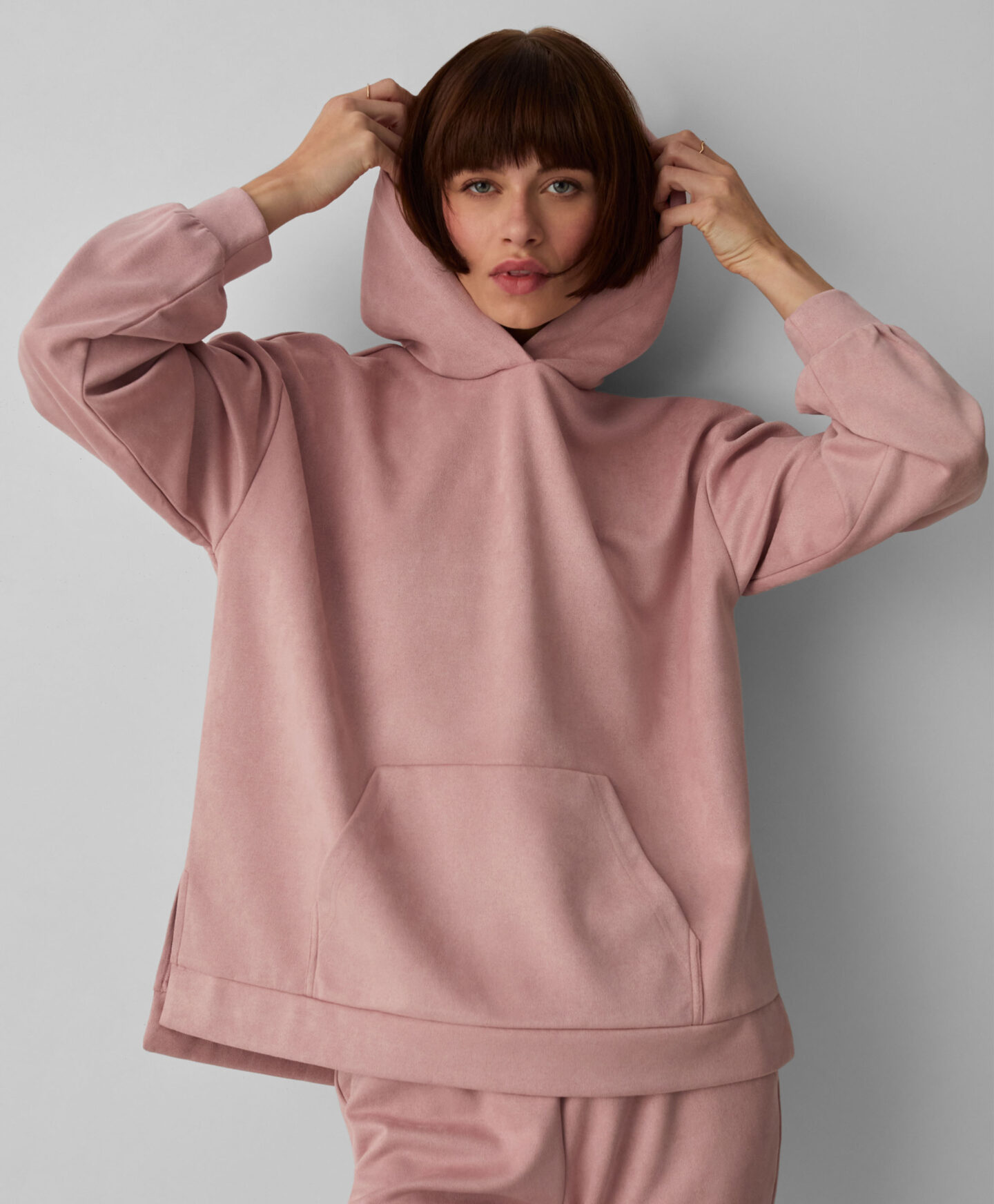 Ženski ružičasti gornji dio trenirke s efektom brušene kože i kapuljačom pružit će vam udobnost i toplinu tijekom hladnih dana. Nije samo udoban, već je i moderan. Mekani materijal, promišljen dizajn i ženstvena paleta boja učinit će ga vašim omiljenim gornjim dijelom trenirke ove jeseni! Savršeno se slaže s donjim dijelom trenirke iz kolekcije. Na izbor između dvije boje.