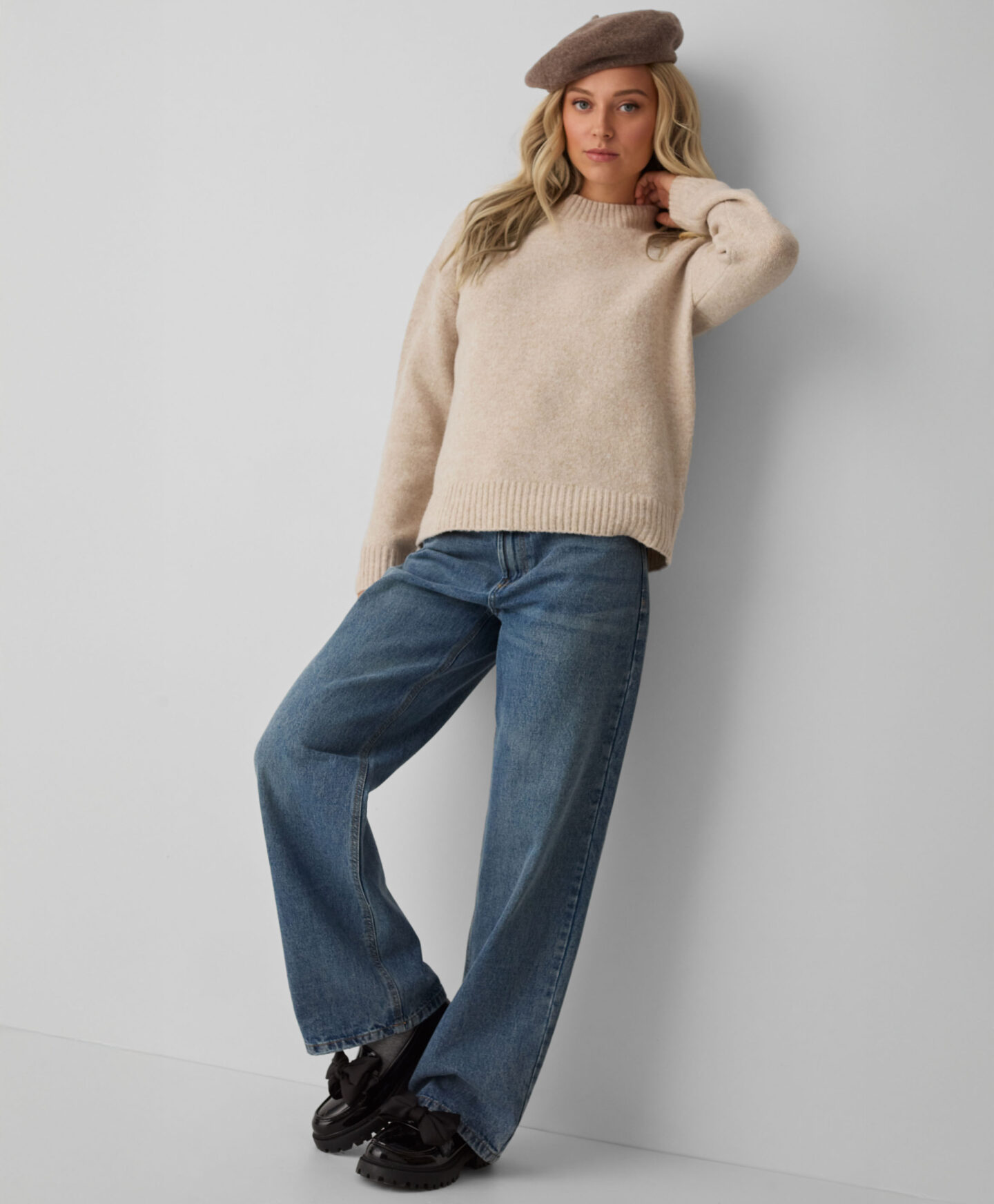 Bež ženski glatki pulover s visokim ovratnikom pomoći će vam u borbi protiv jesenske i zimske hladnoće. Debeo je, topao i šik. Savršen je za ured, susrete s prijateljima ili obavljanje svakodnevnih obaveza u gradu. Izgledat će odlično s trapericama, elegantnim hlačama i donjim dijelovima trenirki. Dostupan u dvije boje.