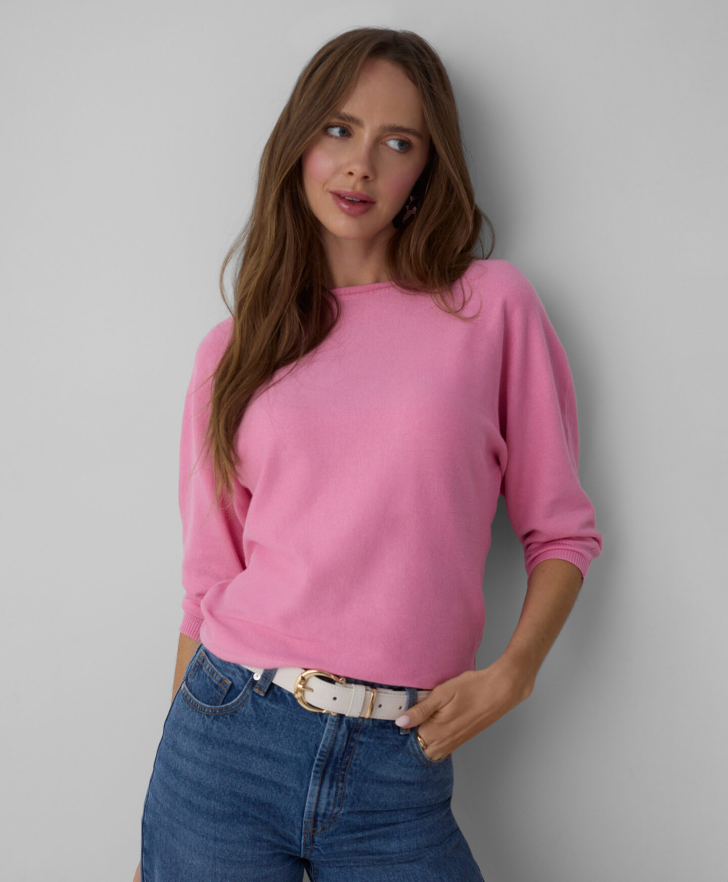 Ružičasti ženski pulover s viskozom udoban je, topao i idealan za razne prigode. Omogućuje slobodu kretanja i dodaje dašak nježnosti svakoj odjevnoj kombinaciji. Savršen je za ured, kavu s prijateljicom ili romantičan izlazak. Na izbor između dvije boje.