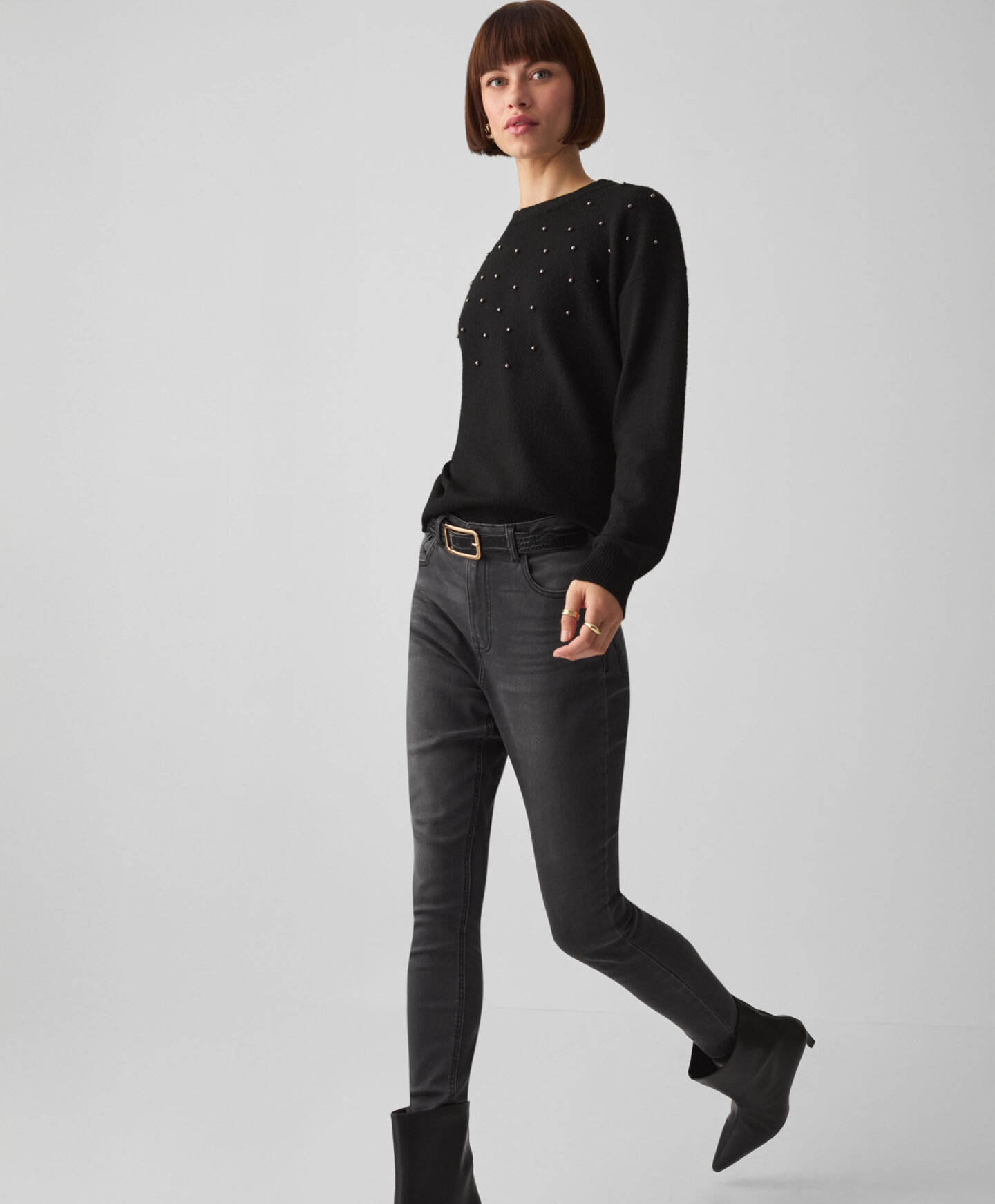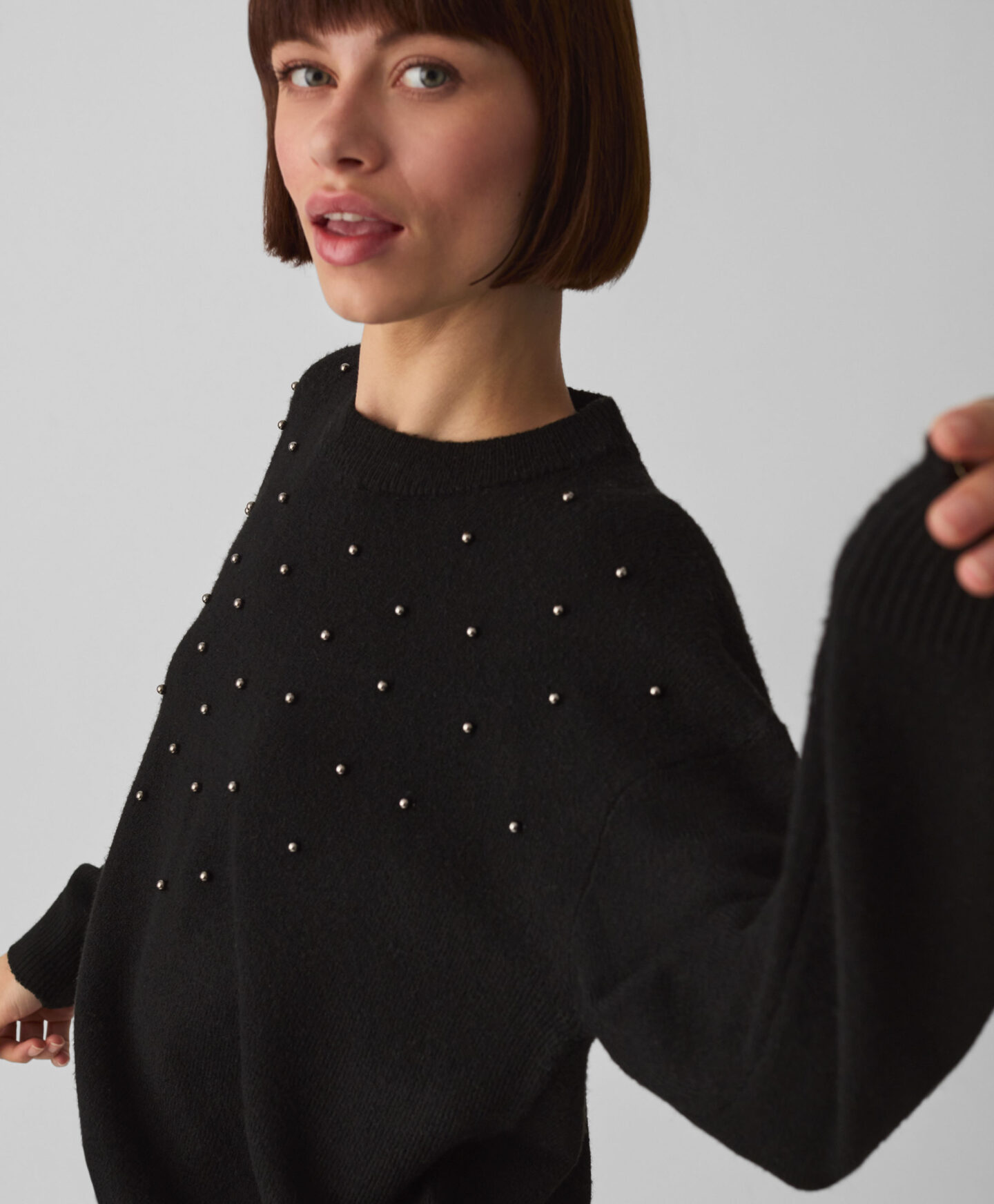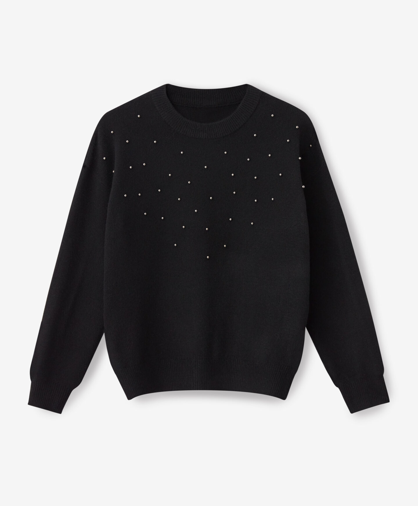 Ženski pulover s biserima crni