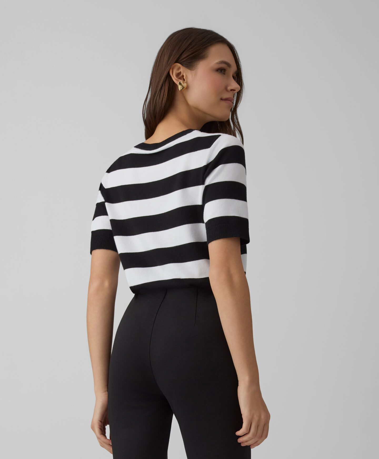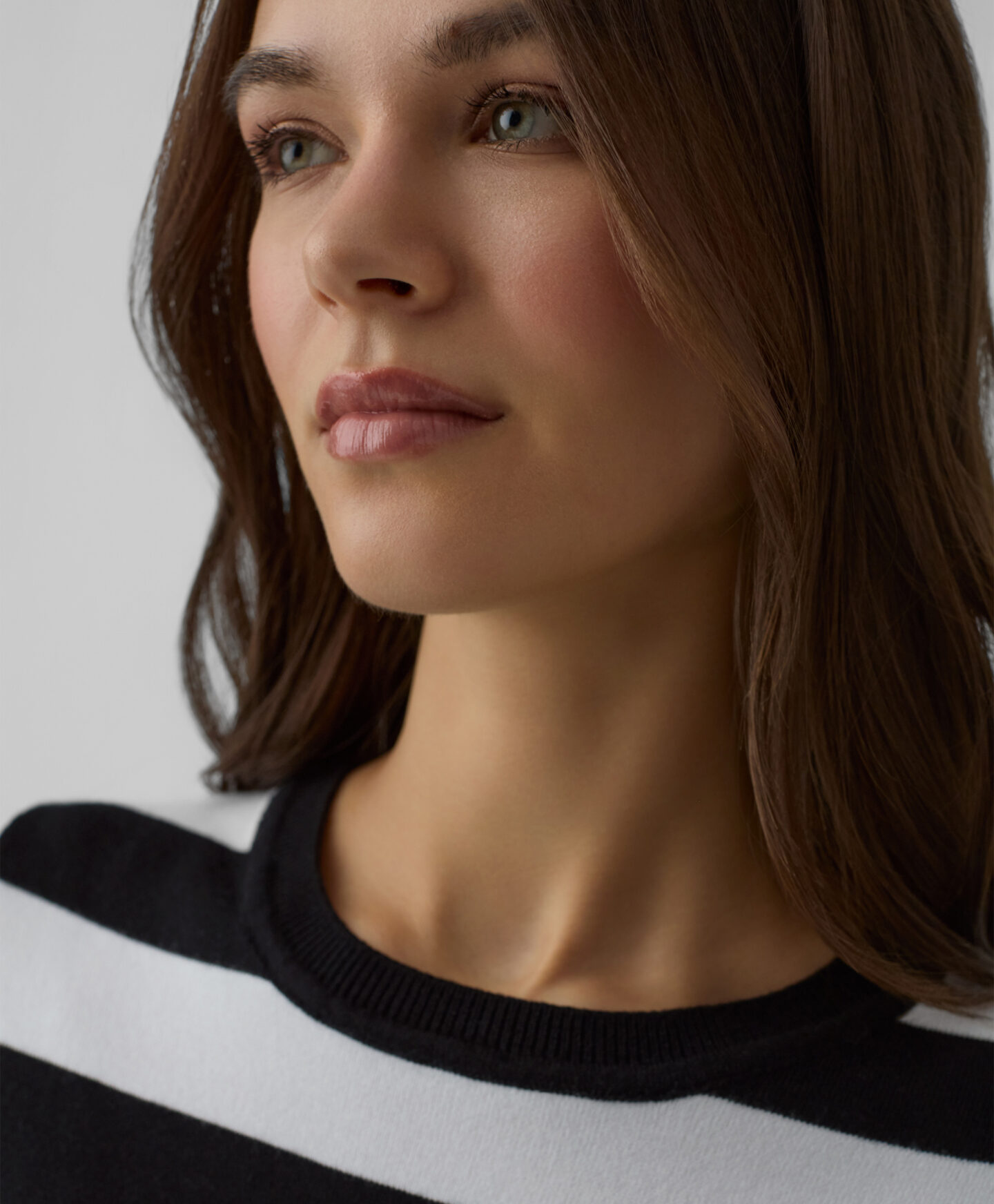 Ženski pulover s prugama i viskozom iznimno je elegantan odjevni komad. Viskoza je mekana i prozračna, što čini pulover udobnim za nošenje te osigurava da lijepo pristaje figuri. Pruge čine pulover modernim i savršeno pristaju uz traperice ili suknje.