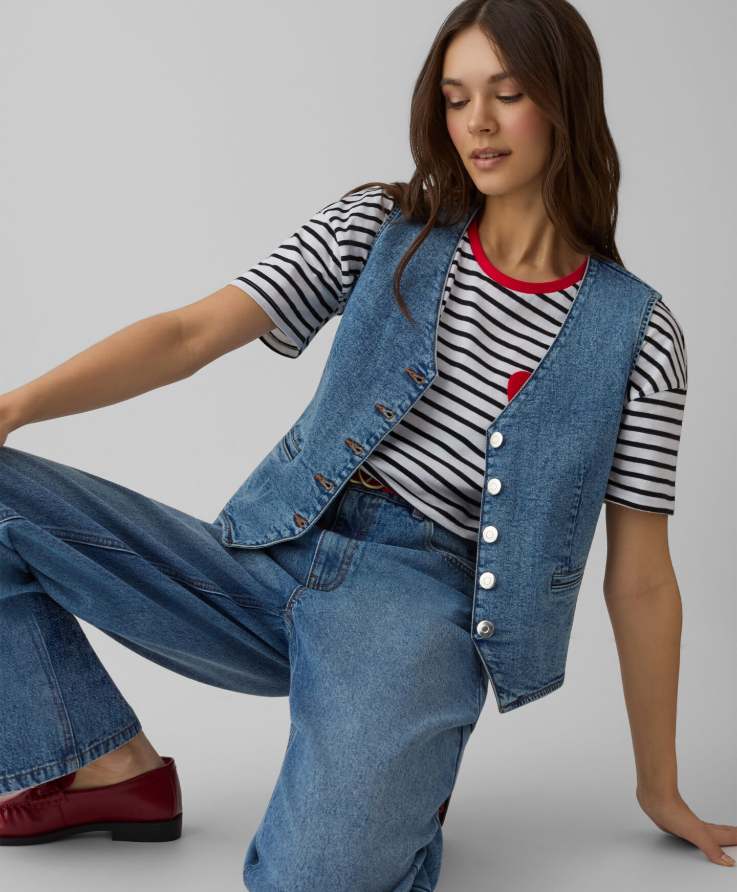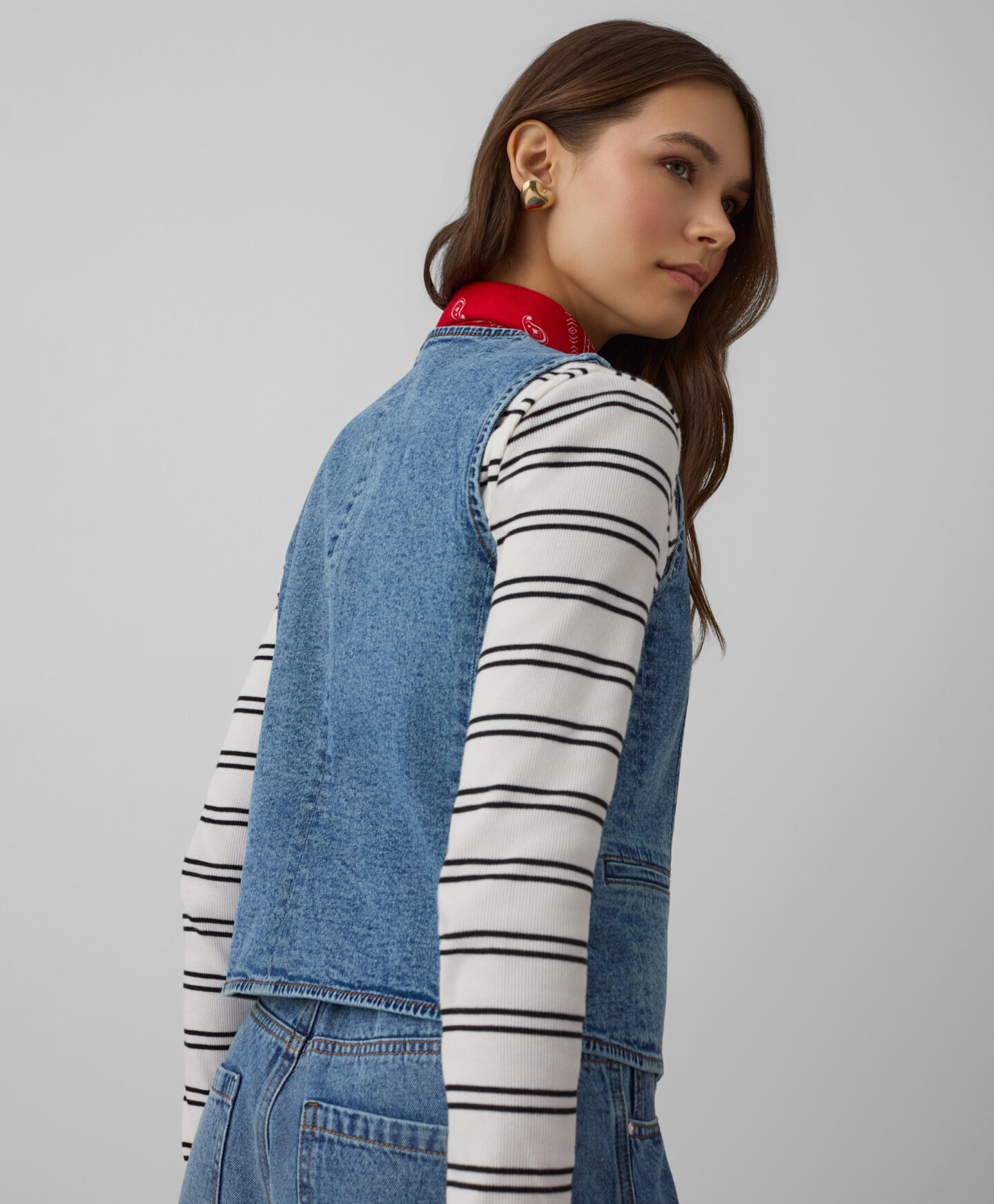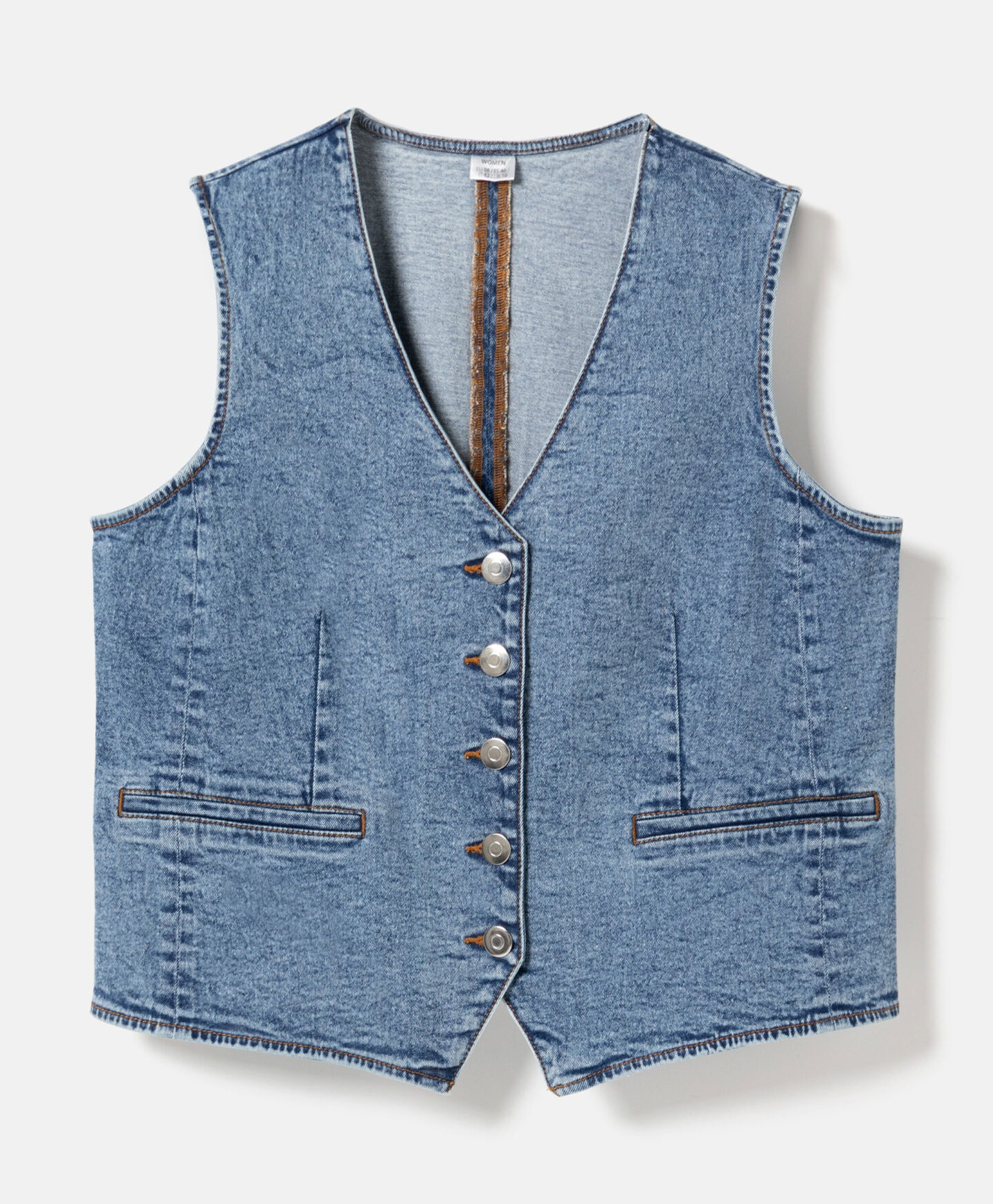 Ženski traper prsluk s visokim udjelom pamuka dobro pristaje uz mnoge odjevne kombinacije. Savršen je dodatak koji će učiniti elegantnu košulju ili ležernu majicu zanimljivijom. Dodatak elastana osigurava savršeno pristajanje.